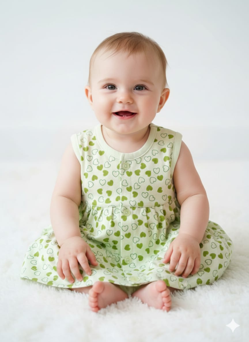 Elevate your little one’s everyday style with our Heartfelt Meadow Frock. This sweet, sage-green dress is the perfect blend of timeless charm and modern comfort, designed to keep your baby girl looking precious and feeling breezy all day long.